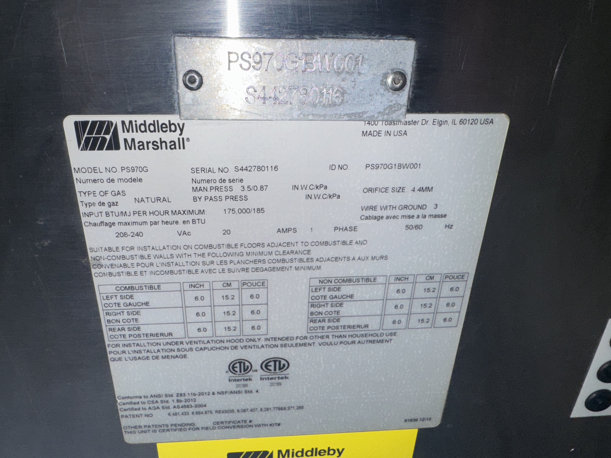 Oven outside dimensions: 106″ wide x 63 1/2″ deep x 61 1/2″ tall